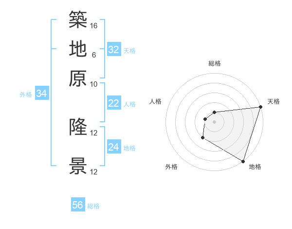 築地原 隆景さんの総格は56画の1点!