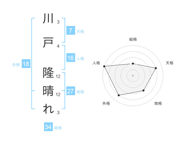 川戸 隆晴れさんを姓名の画数から五運を鑑定