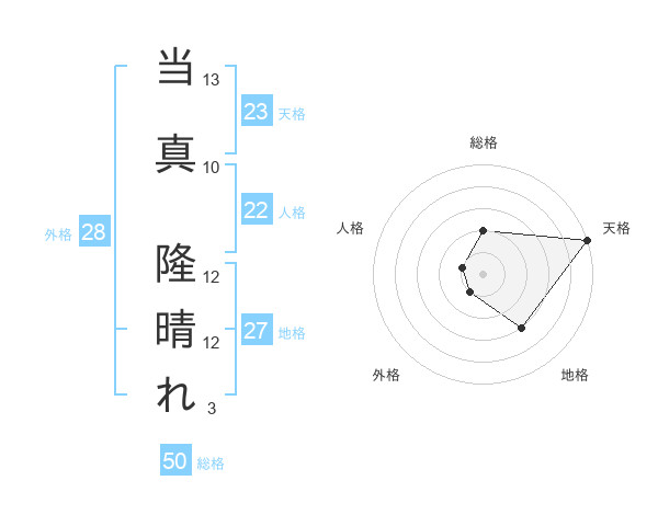 当真 隆晴れさんを姓名の画数から五運を鑑定