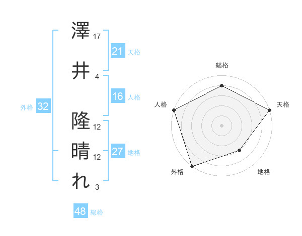 澤井 隆晴れさんを姓名の画数から五運を鑑定