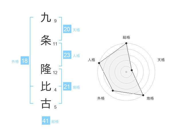 九条 隆比古さんを姓名の画数から五運を鑑定