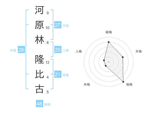 河原林 隆比古さんを姓名の画数から五運を鑑定