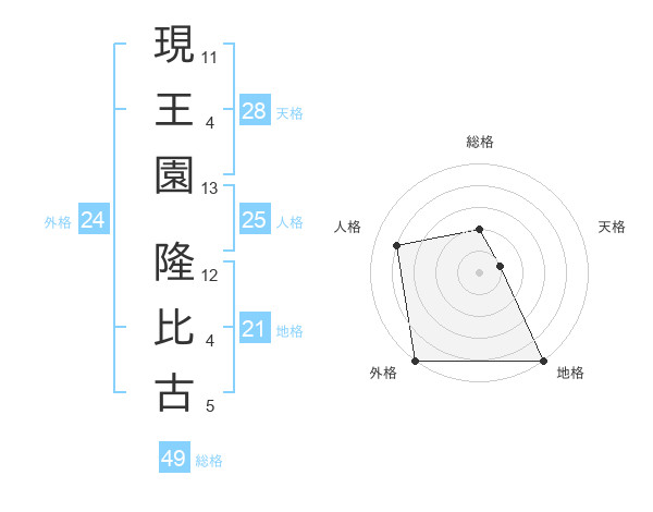現王園 隆比古さんを姓名の画数から五運を鑑定