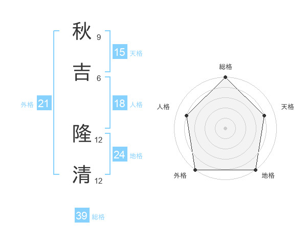 秋吉 隆清さんを姓名の画数から五運を鑑定