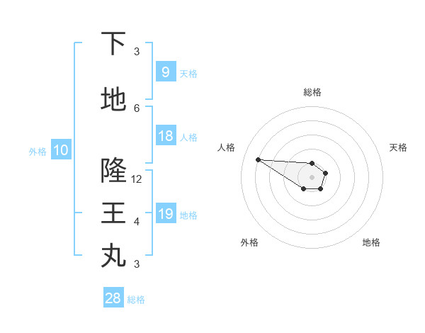 下地 隆王丸さんの地格は19画の1点!