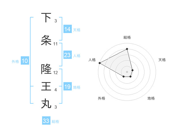 下条 隆王丸さんを姓名の画数から五運を鑑定