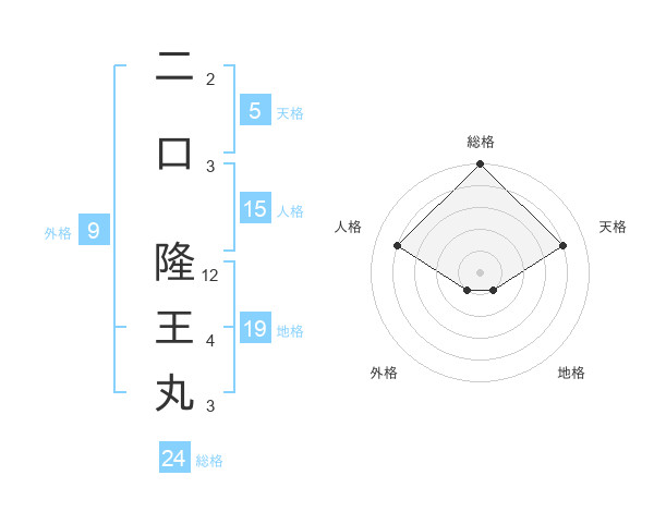二口 隆王丸さんを姓名の画数から五運を鑑定