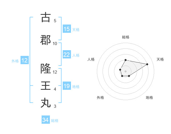 古郡 隆王丸さんを姓名の画数から五運を鑑定