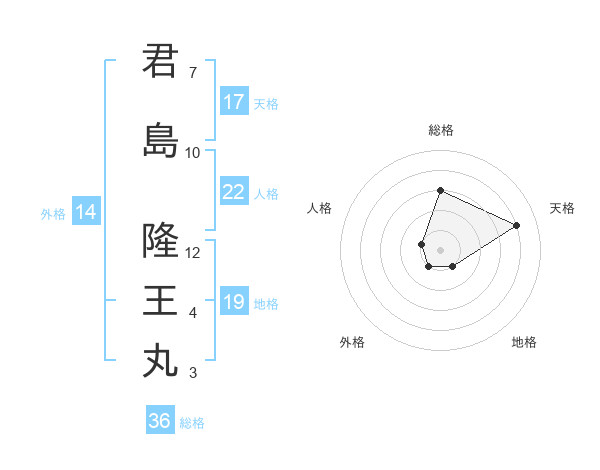 君島 隆王丸さんを姓名の画数から五運を鑑定