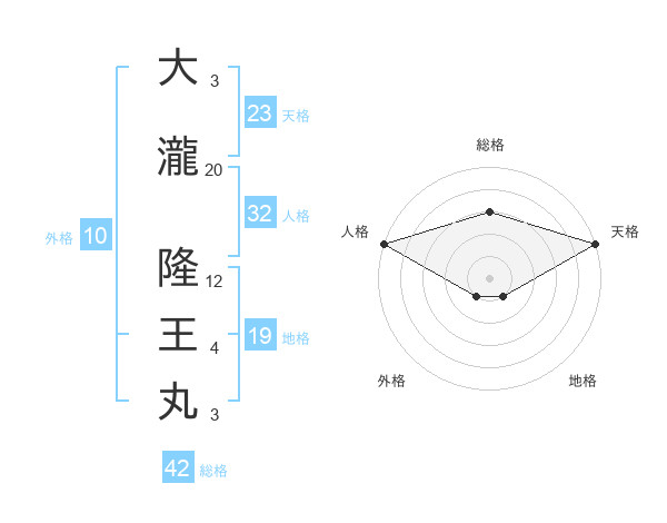 大瀧 隆王丸さんを姓名の画数から五運を鑑定