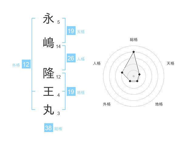 永嶋 隆王丸さんの総格は38画の4点!
