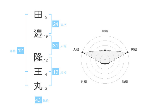 田邉 隆王丸さんを姓名の画数から五運を鑑定