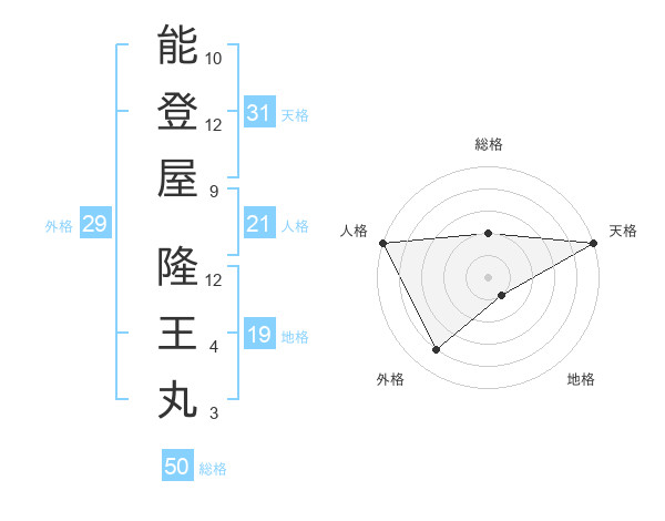 能登屋 隆王丸さんを姓名の画数から五運を鑑定