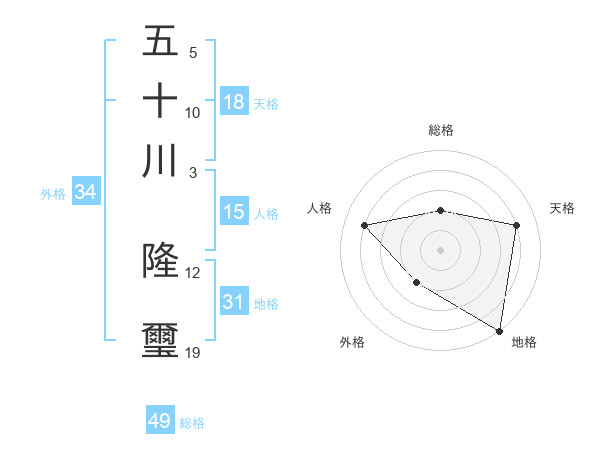 五十川 隆璽さんを姓名の画数から五運を鑑定