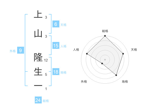上山 隆生一さんの総格は24画の5点!