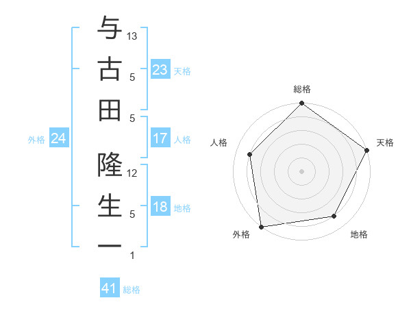 与古田 隆生一さんの総格は41画の5点