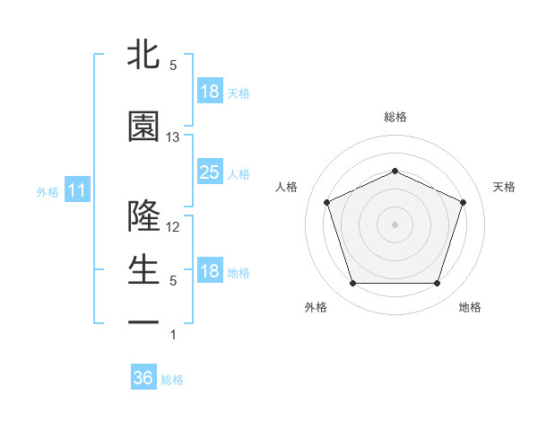 北園 隆生一さんの天格は18画の4点!