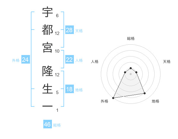 宇都宮 隆生一さんを姓名の画数から五運を鑑定