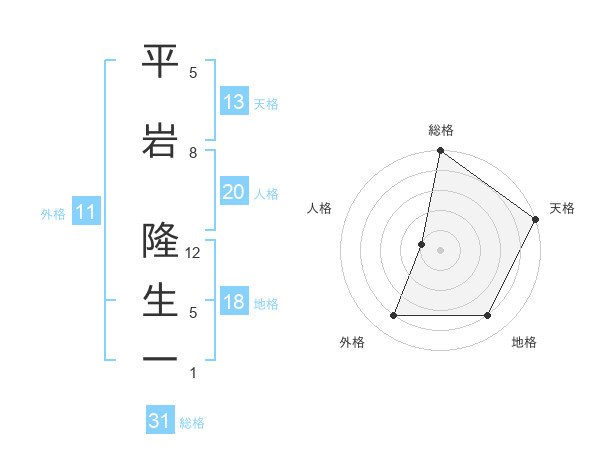平岩 隆生一さんを姓名の画数から五運を鑑定