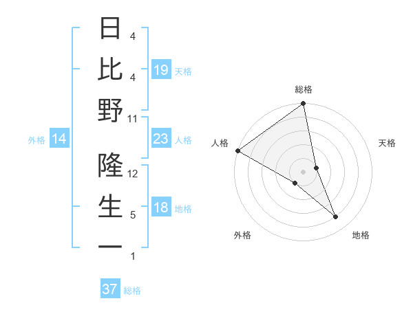 日比野 隆生一さんを姓名の画数から五運を鑑定