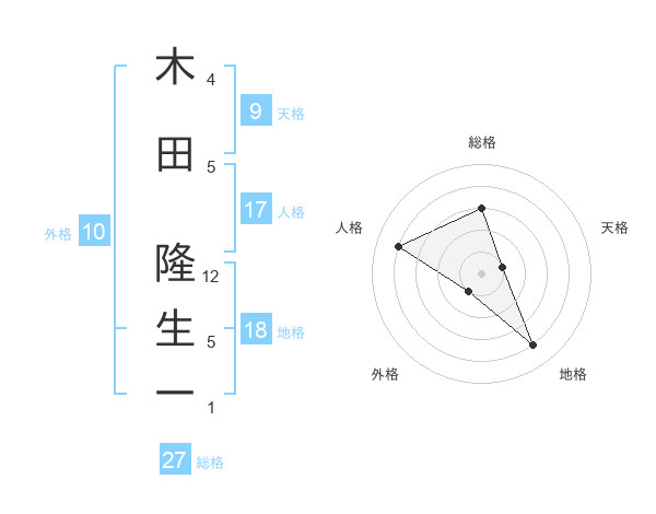 木田 隆生一さんを姓名の画数から五運を鑑定
