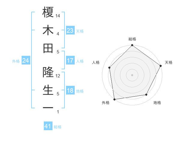 榎木田 隆生一さんの総格は41画の5点