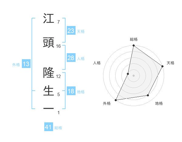 江頭 隆生一さんを姓名の画数から五運を鑑定