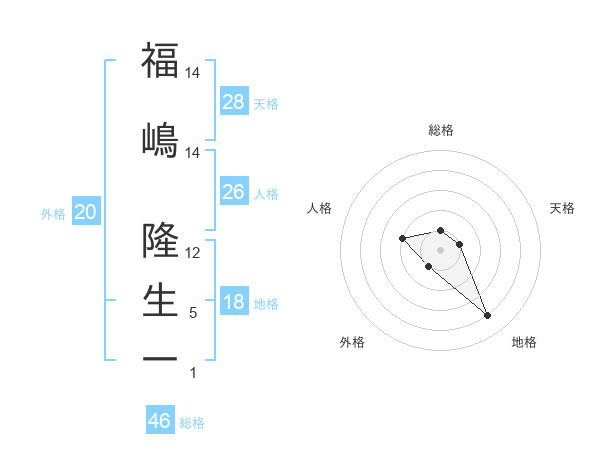 福嶋 隆生一さんを姓名の画数から五運を鑑定