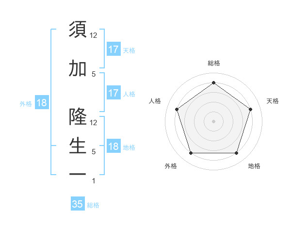 須加 隆生一さんを姓名の画数から五運を鑑定
