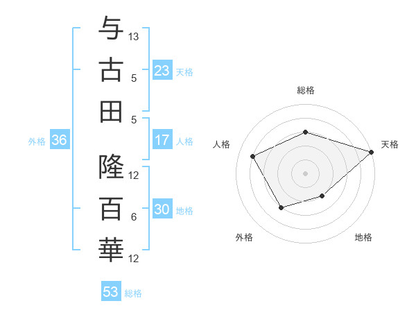与古田 隆百華さんを姓名の画数から五運を鑑定
