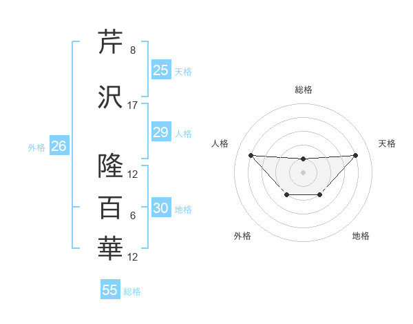 芹沢 隆百華さんの総格は55画の1点!