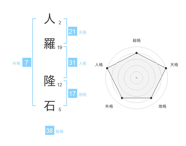 人羅 隆石さんの総格は38画の4点!