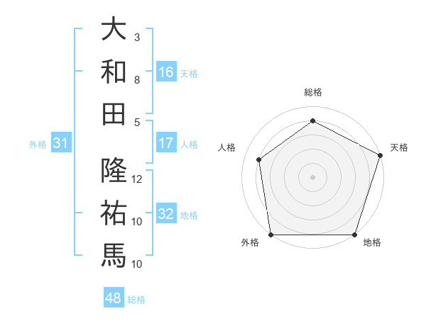 大和田 隆祐馬さんを姓名の画数から五運を鑑定