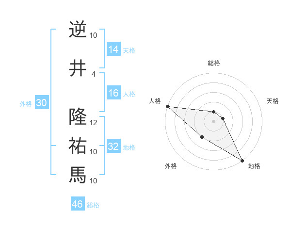 逆井 隆祐馬さんの総格は46画の1点!