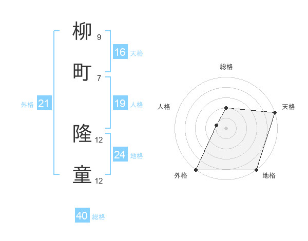 柳町 隆童さんの天格は16画の5点!