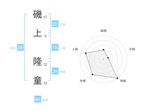 磯上 隆童さんを姓名の画数から五運を鑑定