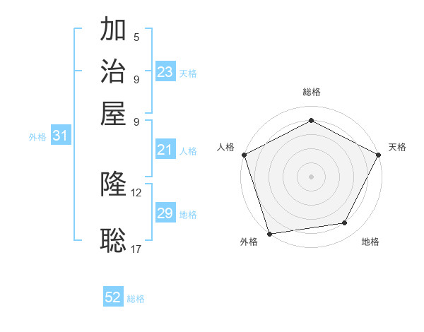 加治屋 隆聡さんを姓名の画数から五運を鑑定