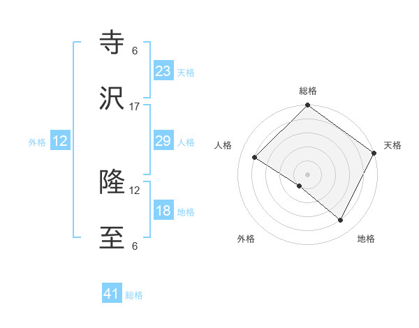 寺沢 隆至さんの天格は23画の5点!