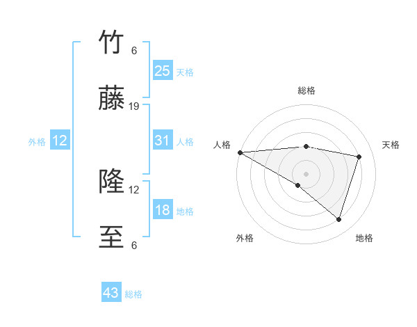 竹藤 隆至さんの総格は43画の2点!