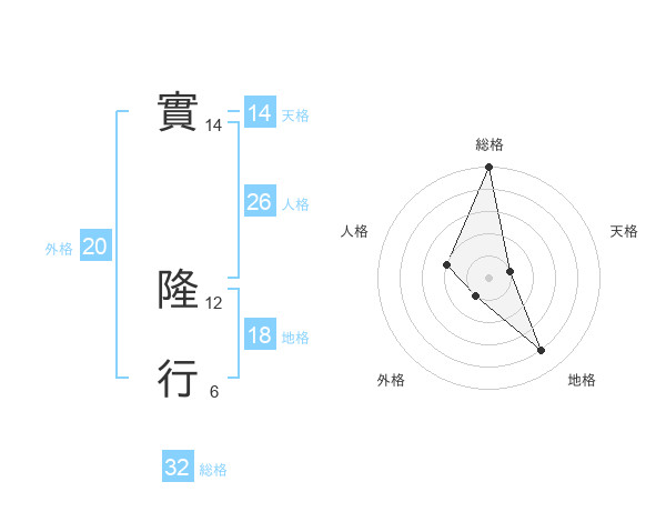 實 隆行さんの総格は32画の5点!