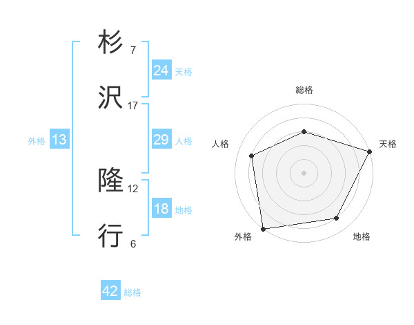 杉沢 隆行さんの総格は42画の3点!