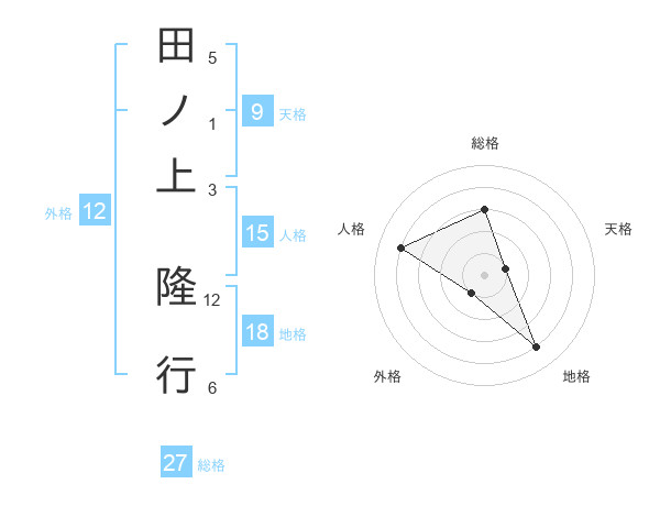 田ノ上 隆行さんを姓名の画数から五運を鑑定