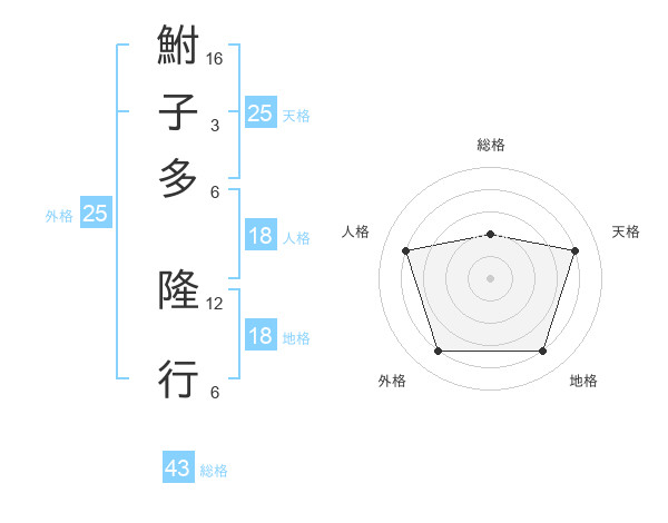 鮒子多 隆行さんを姓名の画数から五運を鑑定