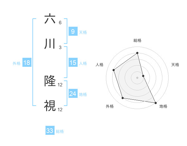六川 隆視さんの総格は33画の4点!