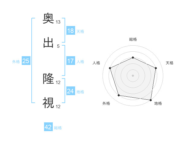 奥出 隆視さんを姓名の画数から五運を鑑定