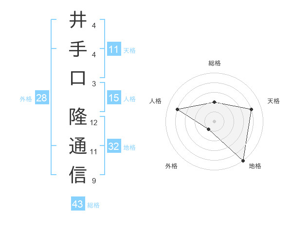 井手口 隆通信さんを姓名の画数から五運を鑑定
