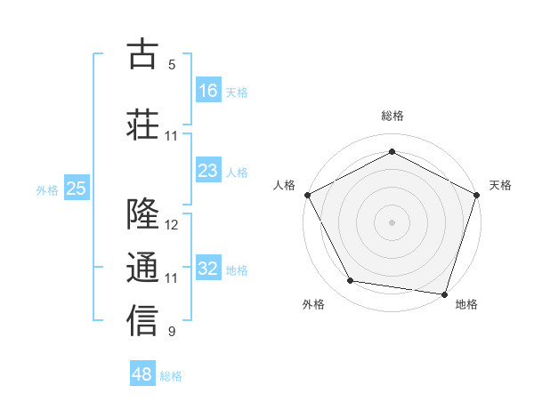 古荘 隆通信さんを姓名の画数から五運を鑑定