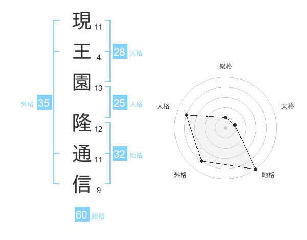 現王園 隆通信さんを姓名の画数から五運を鑑定