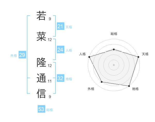 若菜 隆通信さんの総格は53画の3点!