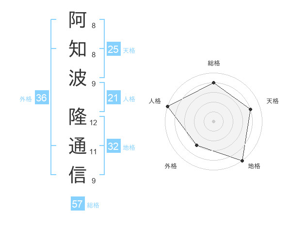 阿知波 隆通信さんを姓名の画数から五運を鑑定